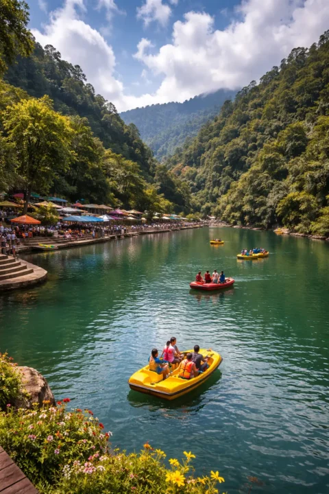Mussoorie Lake is a man-made lake located on the Dehradun-Mussoorie road. It is a popular stop for boating, relaxation, and photography, especially for families travelling with children.